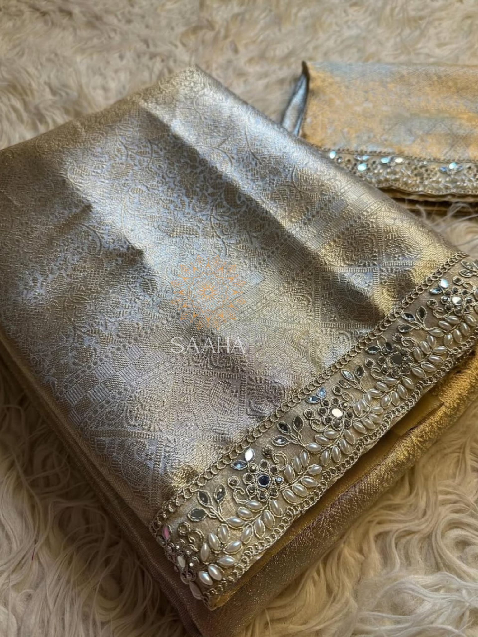 Chandni Chic_Silver Kanjeevaram Tissue Silk Saree