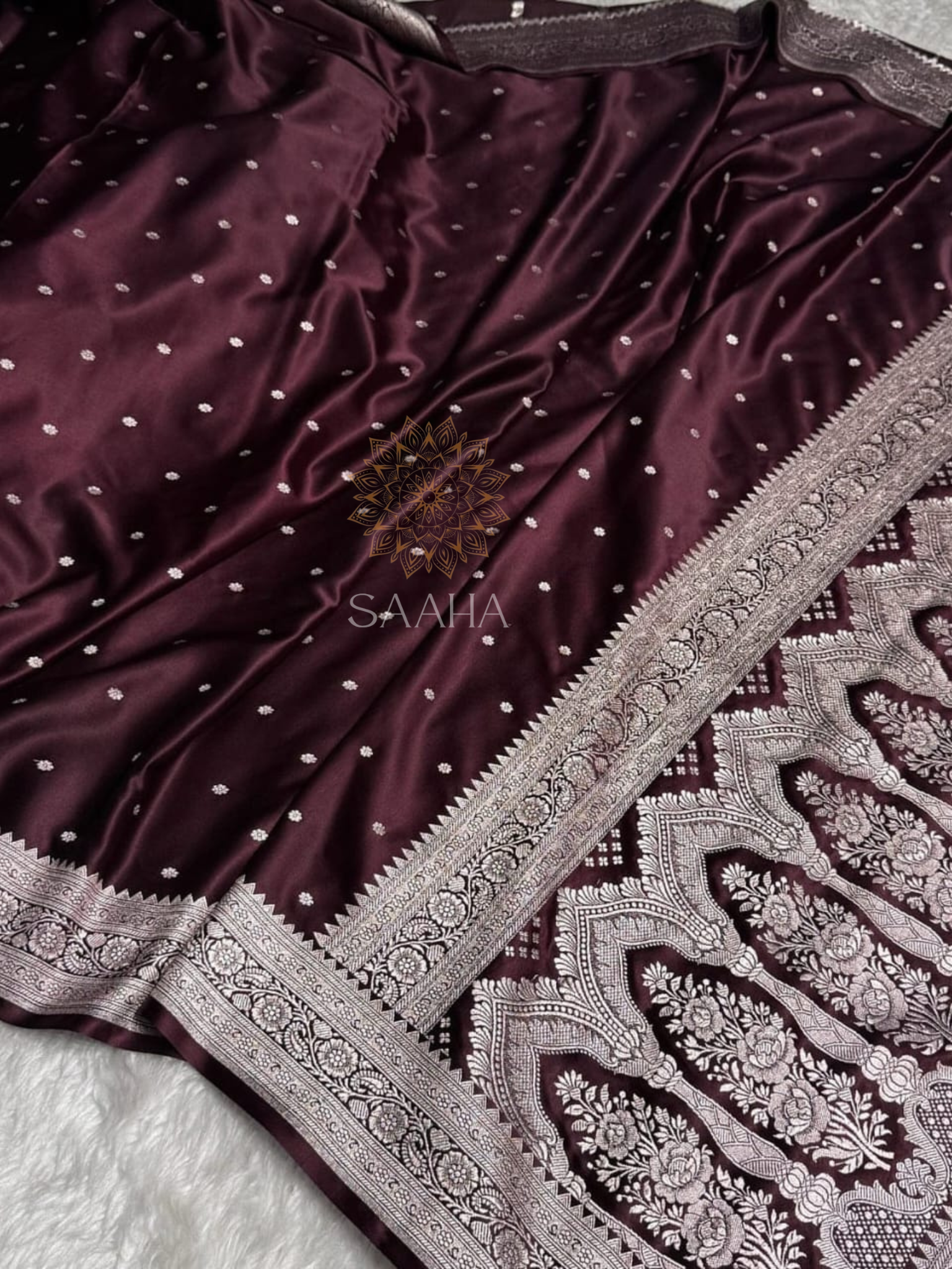 Coffee Silver Charm_Handwoven Mashru Silk Saree