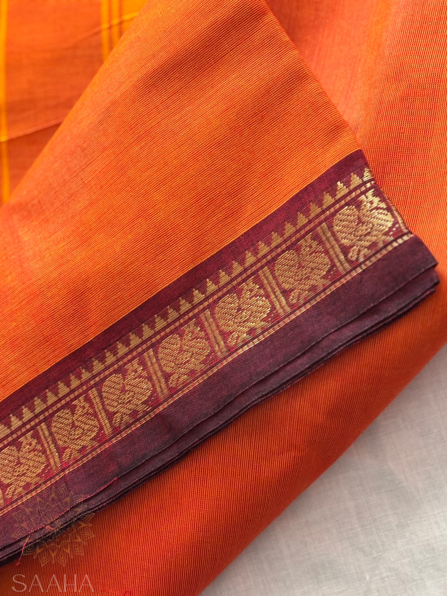 Geethanjali_Handwoven Kanchi Cotton Saree with zari woven border