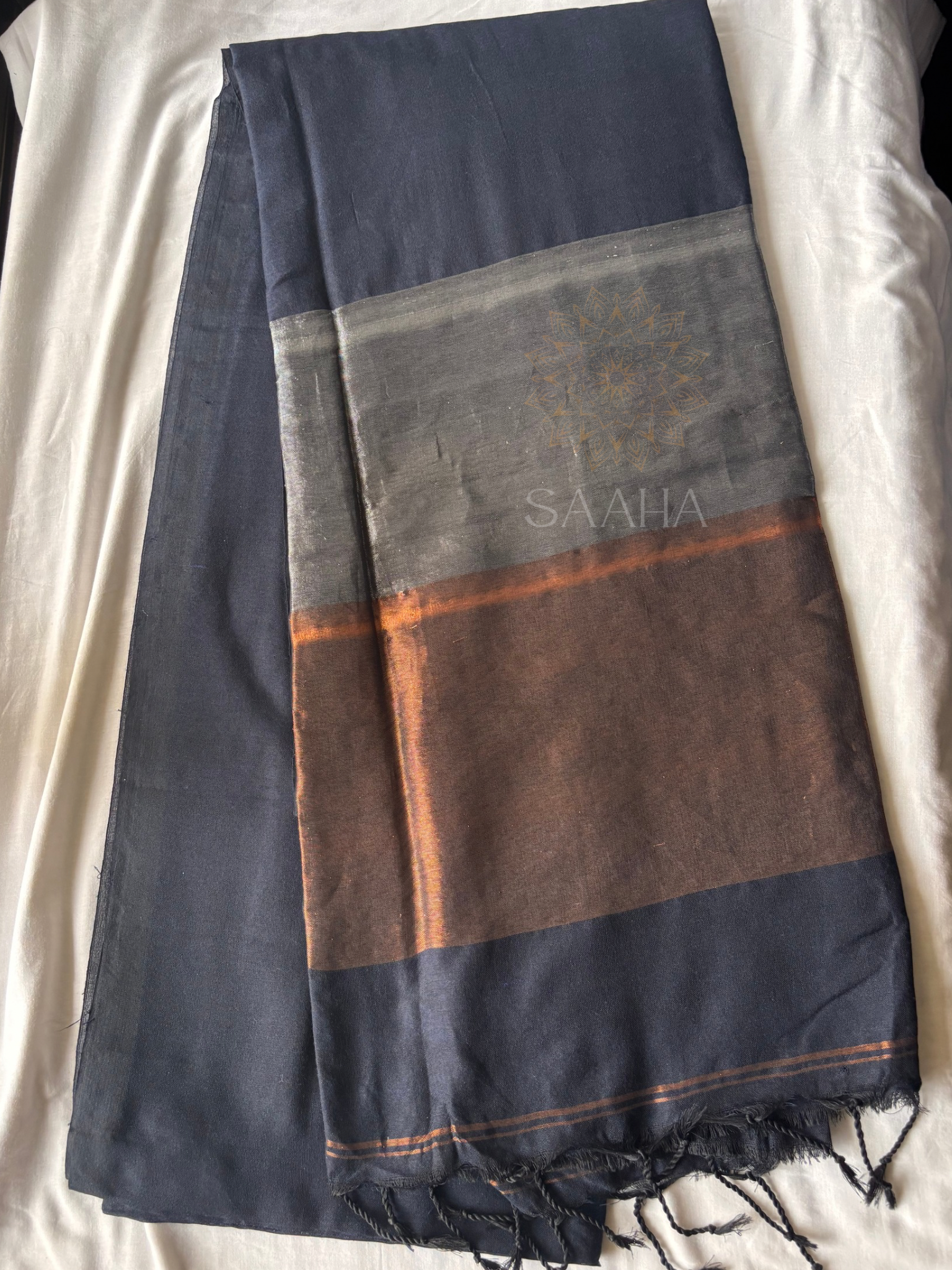 Midnight Copper Glow_Handwoven Cotton Tissue Saree