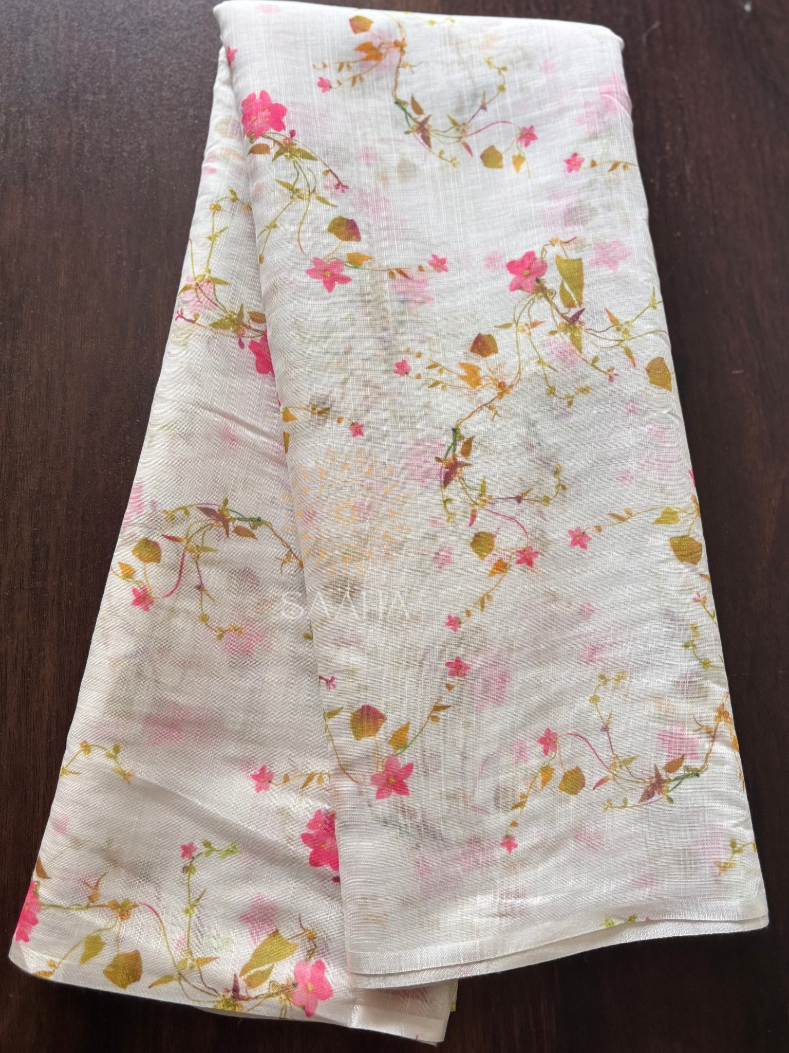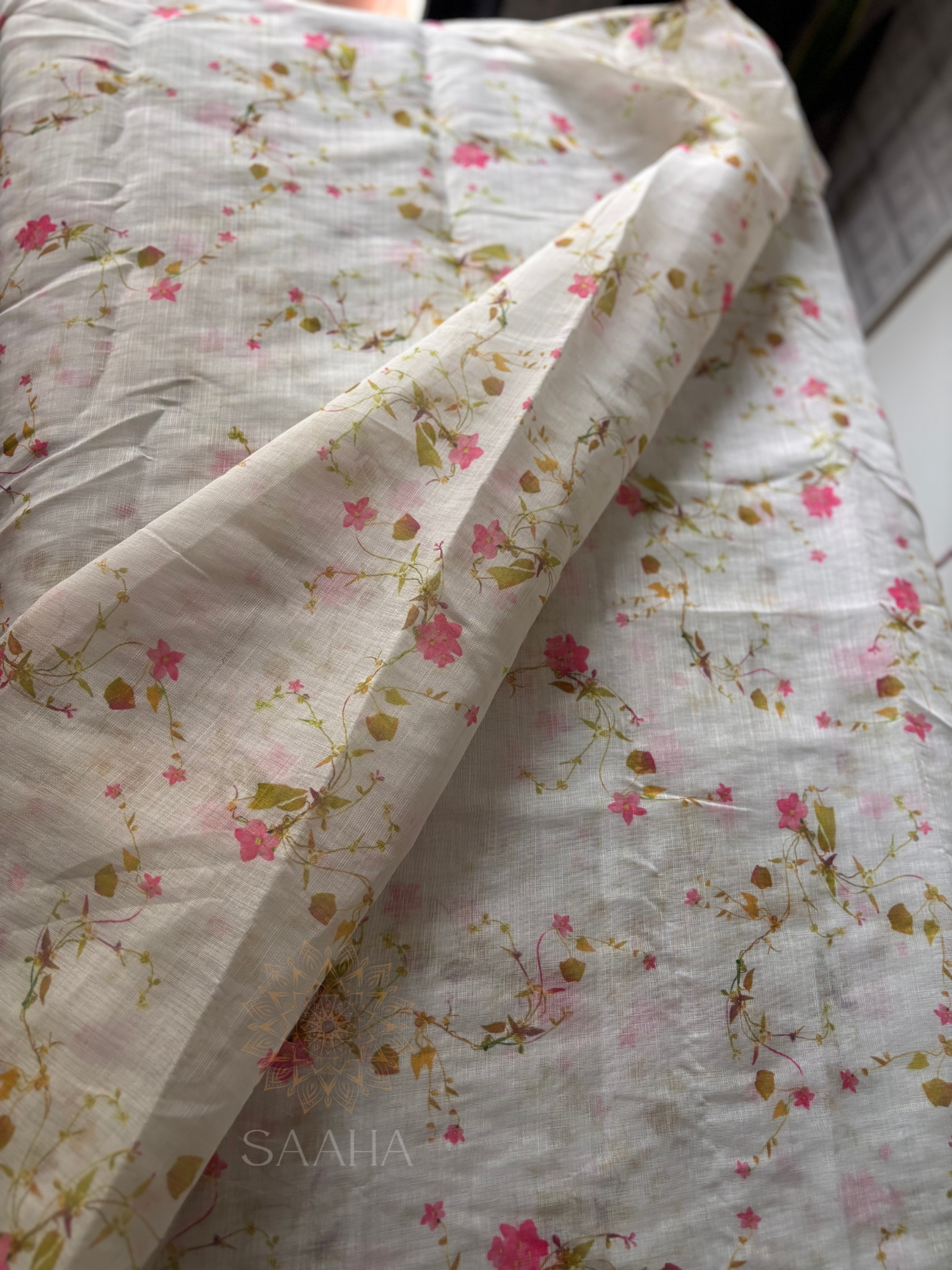 Sadabahar_Handwoven Linen Saree with Floral Digital prints