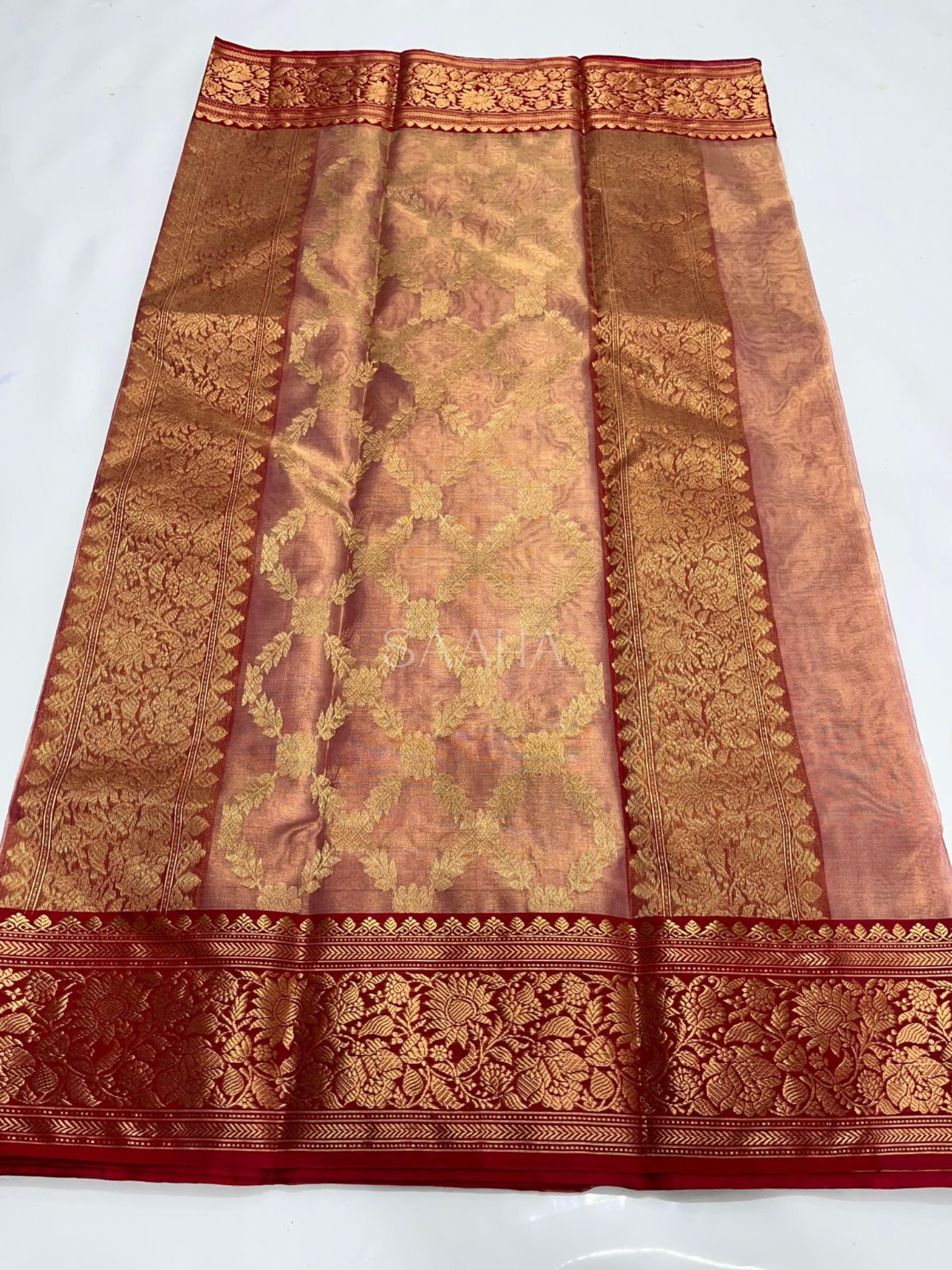 Sunset Hues_Handwoven Soft Pink Chanderi Tissue Silk Saree